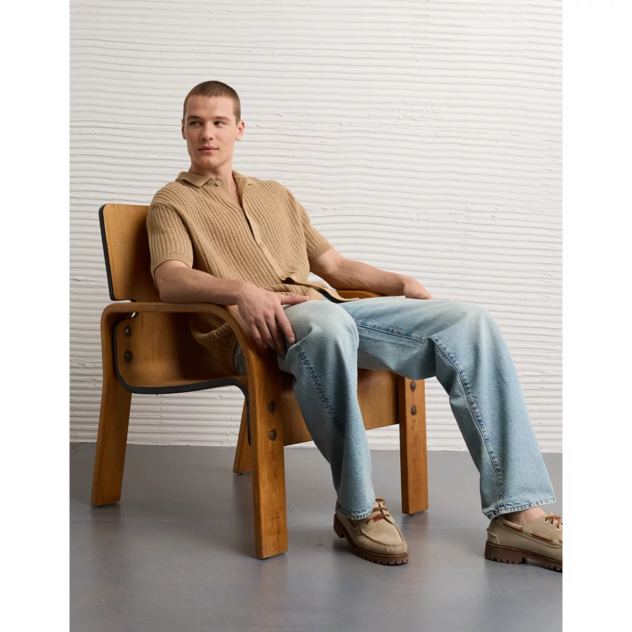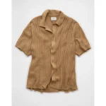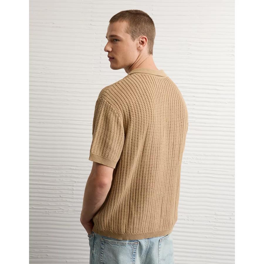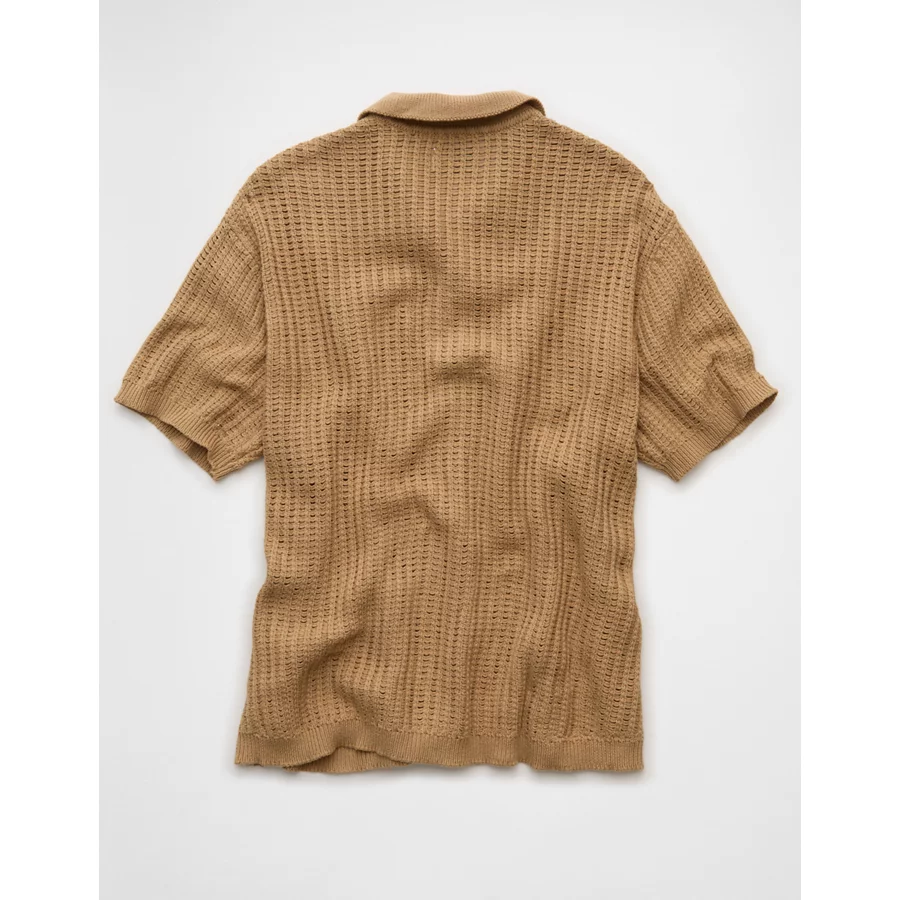 AE Weekend Button-Up Sweater Polo Shirt – Khaki