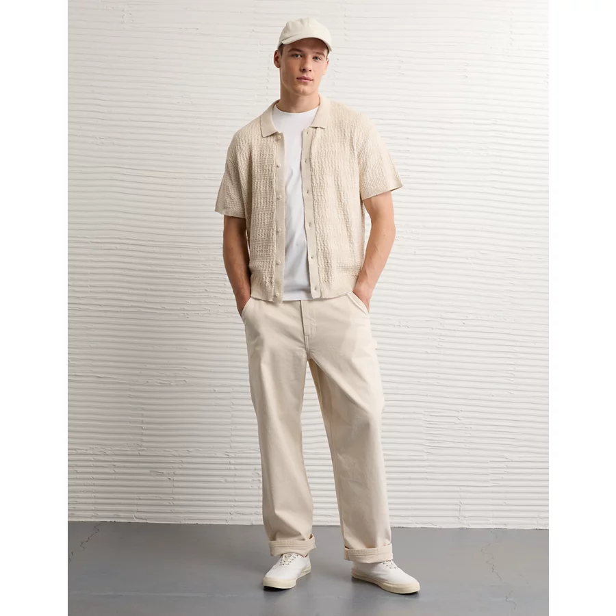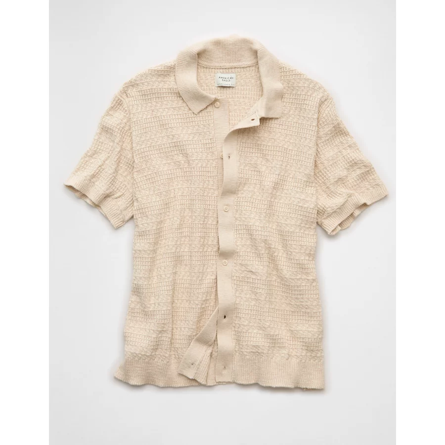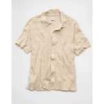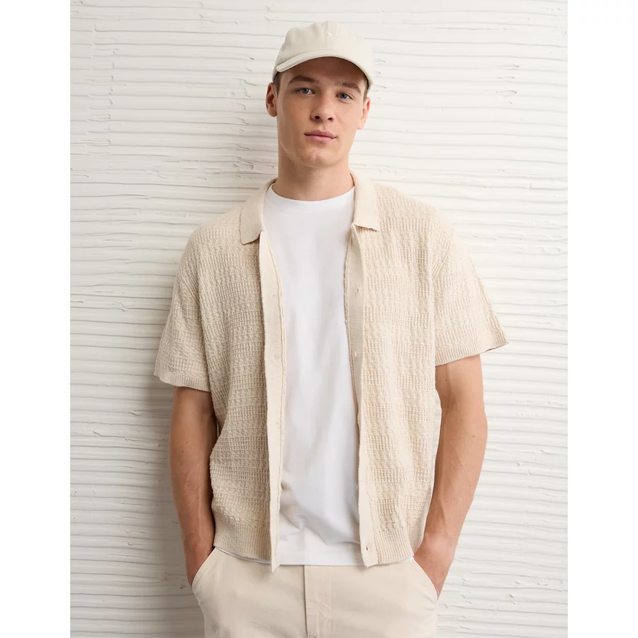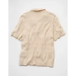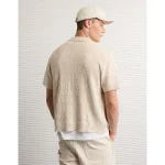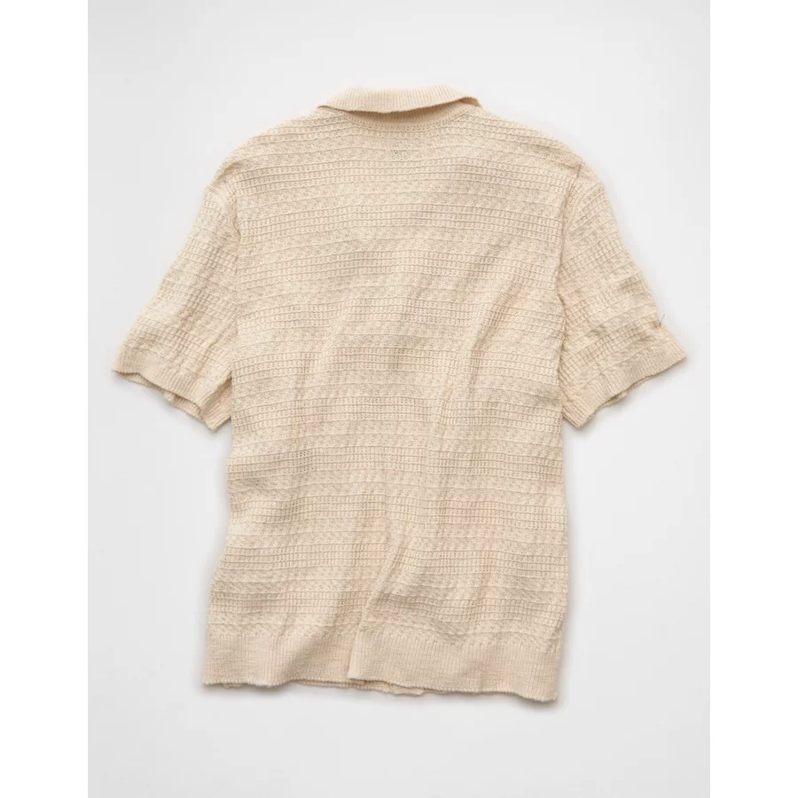 AE Weekend Button-Up Sweater Polo Shirt – Oatmeal Heather