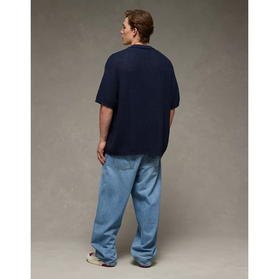 AE Weekend Button-Up Sweater Polo Shirt – Rich Navy