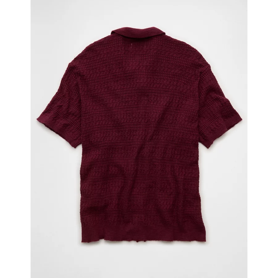 AE Weekend Button-Up Sweater Polo Shirt – Wineberry