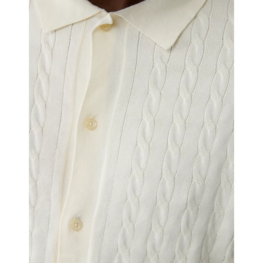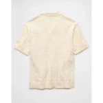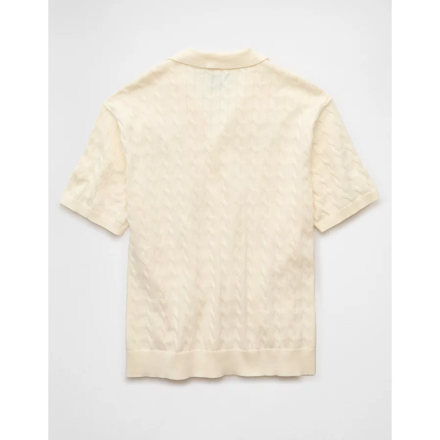 AE Weekend Cable Knit Button-Up Sweater Polo Shirt – Cream