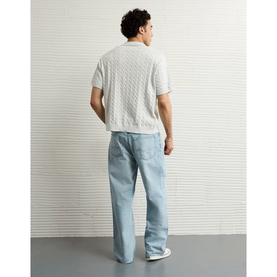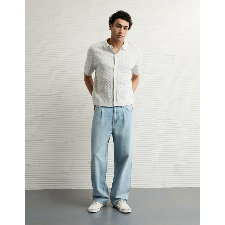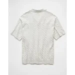 AE Weekend Cable Knit Button-Up Sweater Polo Shirt - Cream