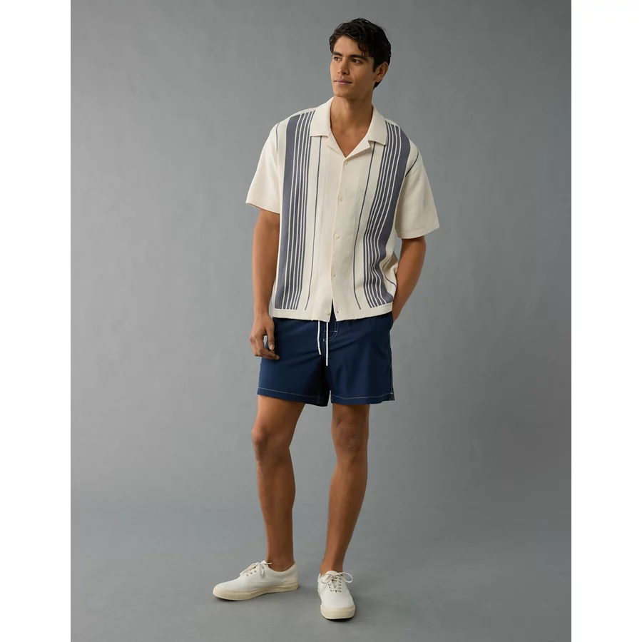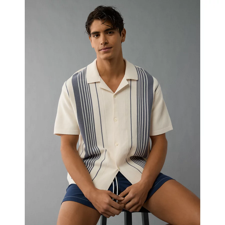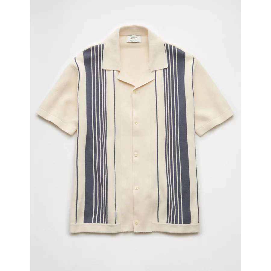 AE Weekend Striped Button-Up Sweater Polo Shirt – Frosty Cream