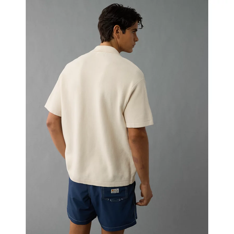 AE Weekend Cable Knit Sweater Polo Shirt - Cream