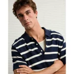 AE Weekend Striped Sweater Polo Shirt – Navy