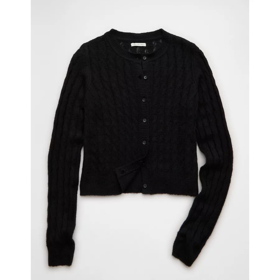 AE Whoa So Soft Button-Front Cardigan – Black
