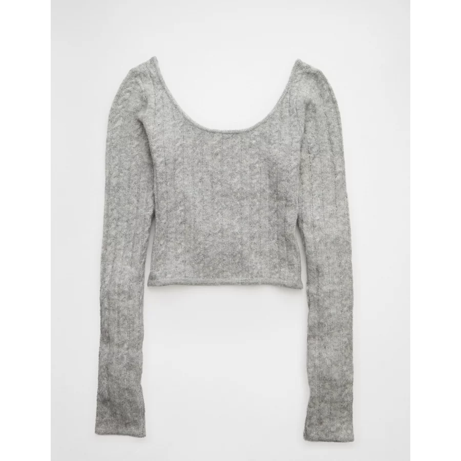 AE Whoa So Soft Cropped Scoop Neck Sweater – Medium Heather Gray