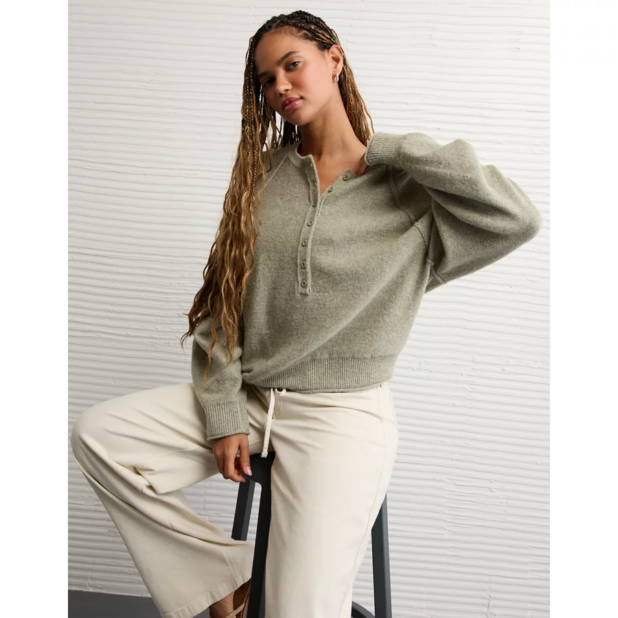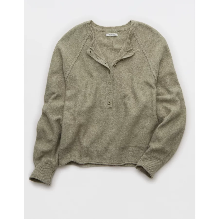 AE Whoa So Soft Henley Sweater – Faded Olive