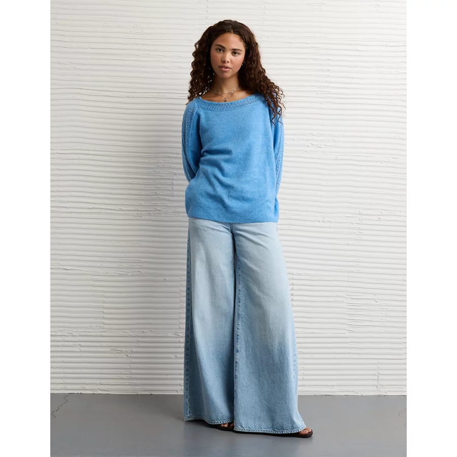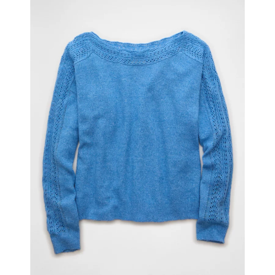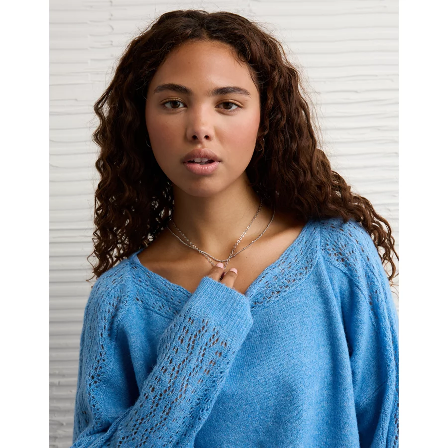 AE Whoa So Soft Lace Sweater – Gravity Blue
