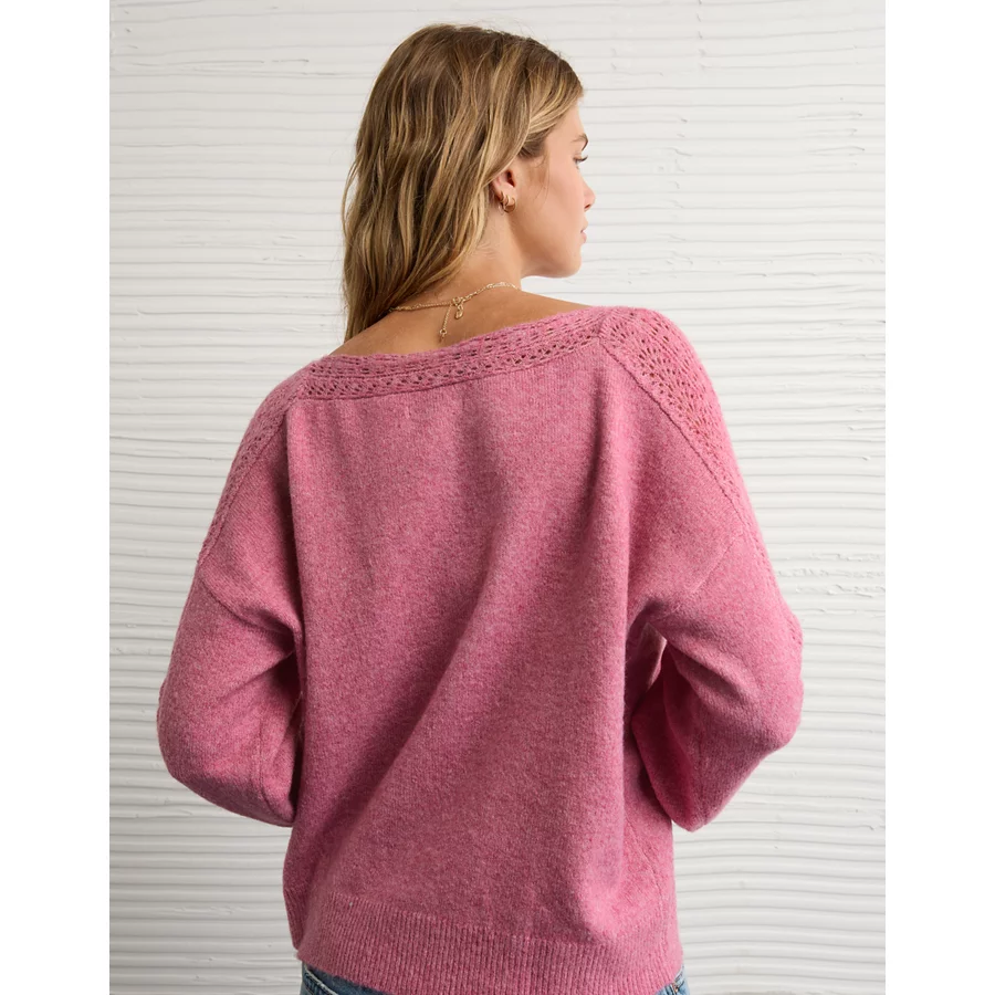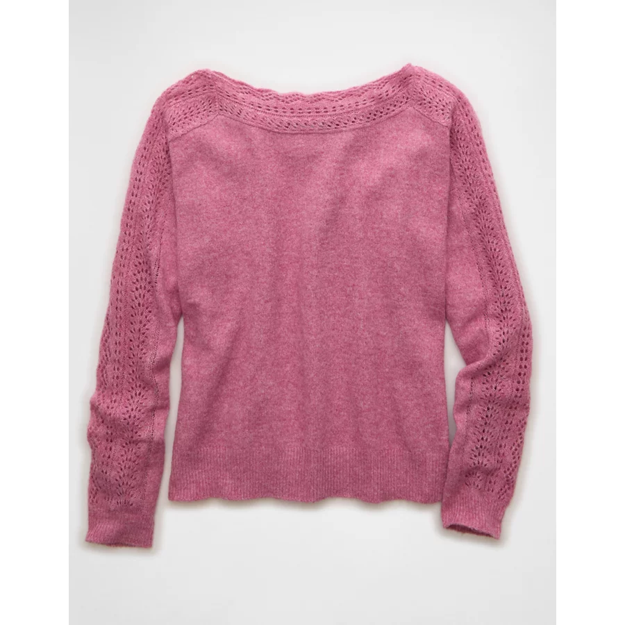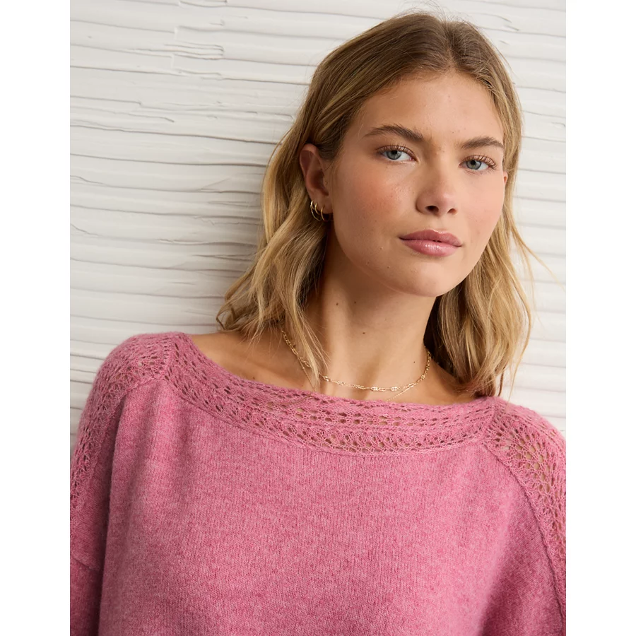 AE Whoa So Soft Lace Sweater - Blue Breeze