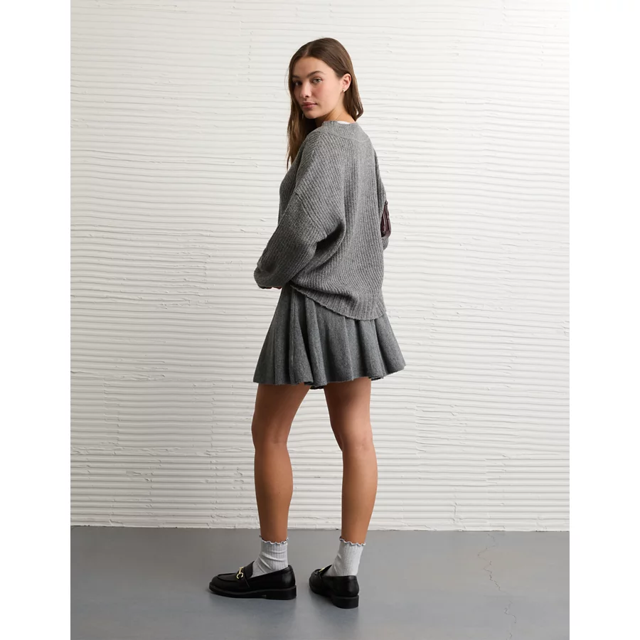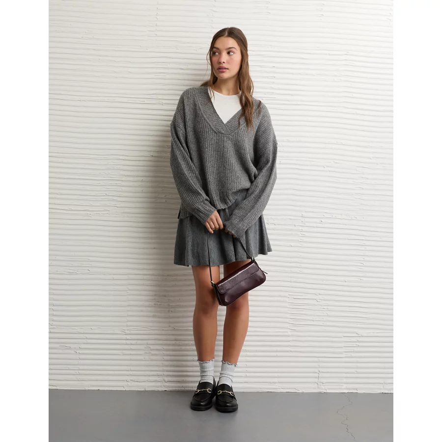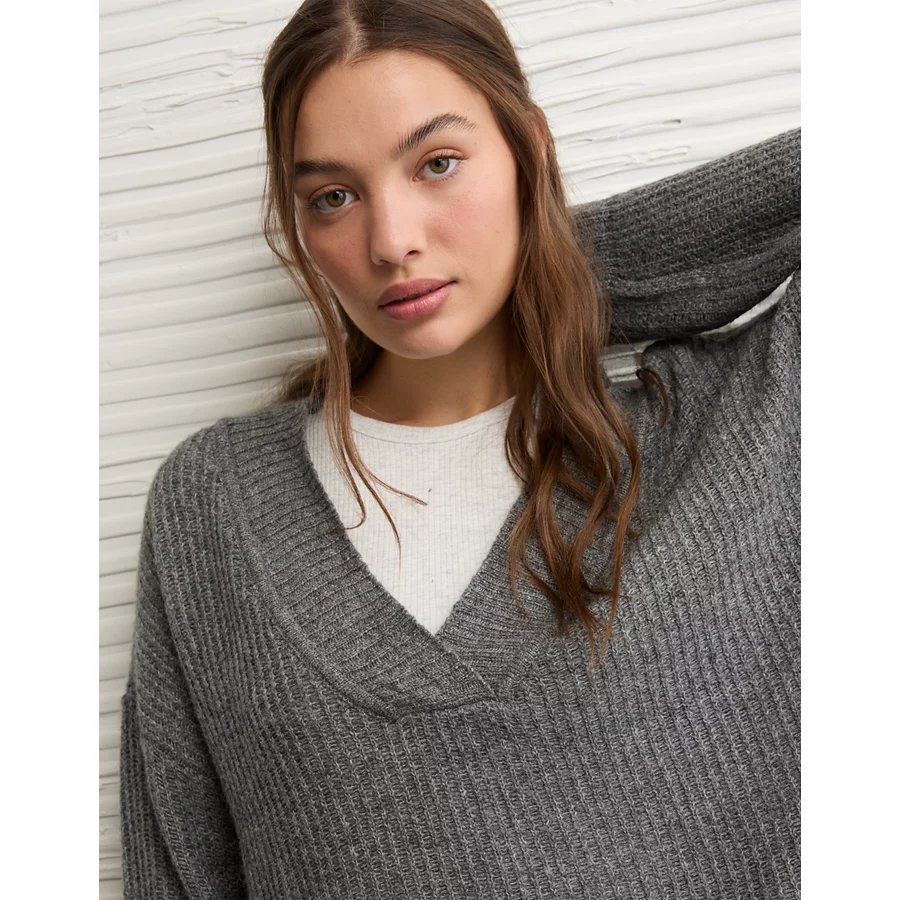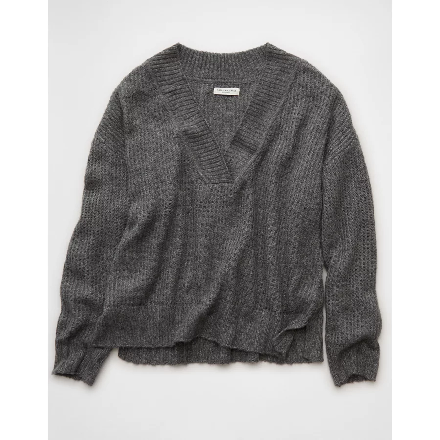 AE Whoa So Soft Oversized V-Neck Sweater – Charcoal Heather Gray