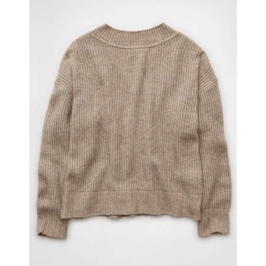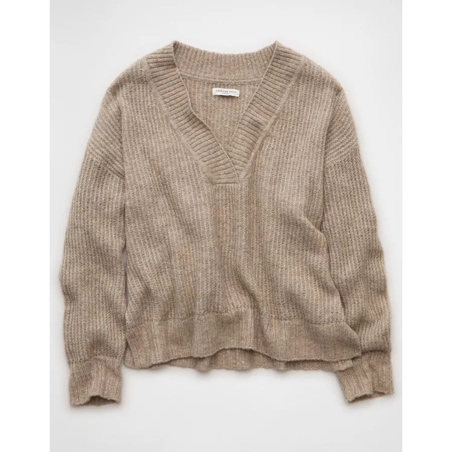 AE Whoa So Soft Oversized V-Neck Sweater – Toasted Almond