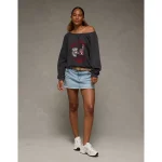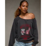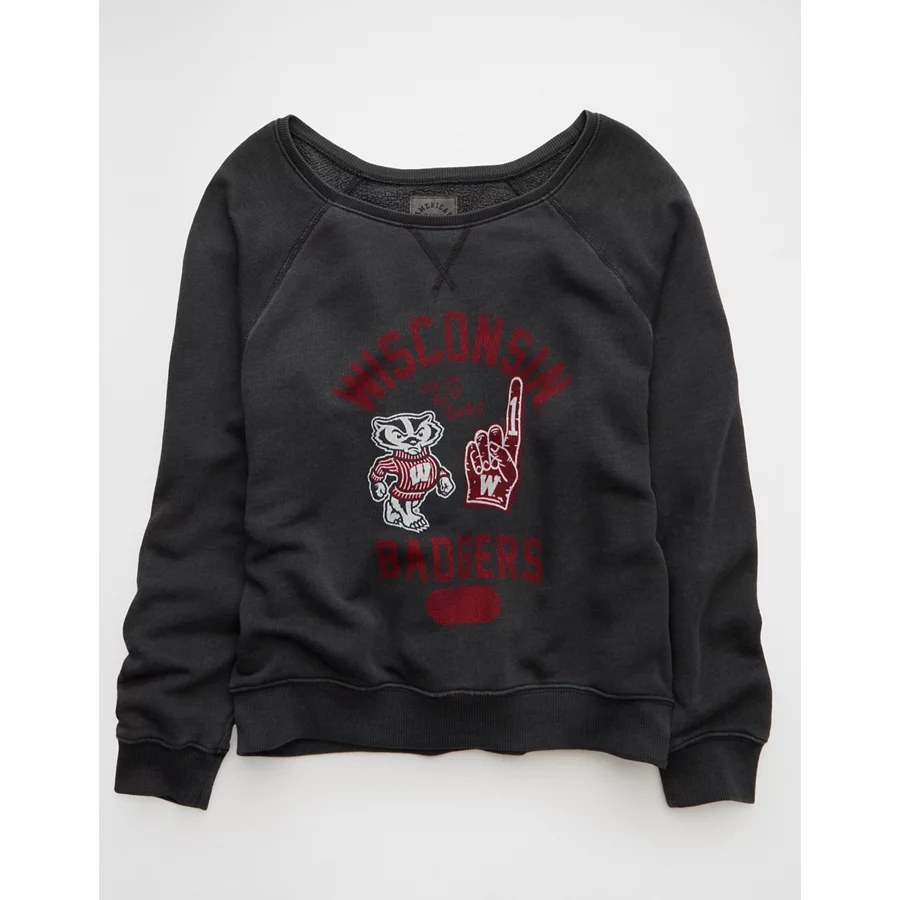 AE Wisconsin Badgers Graphic Off The Shoulder Sweatshirt – Faded Black