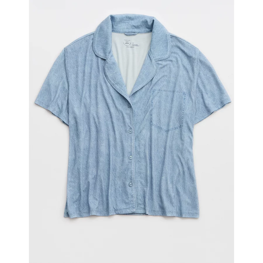 AE x Aerie Match Made In Denim Real Soft® Short Sleeve Shirt – Monaco Blue