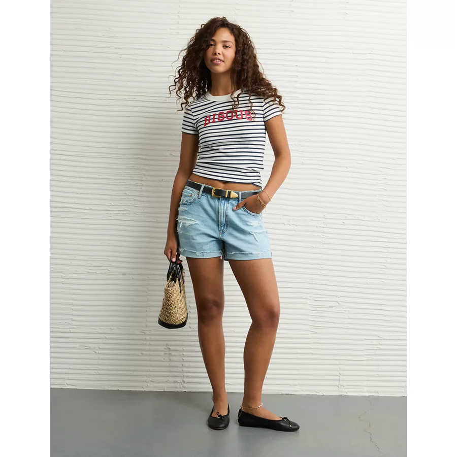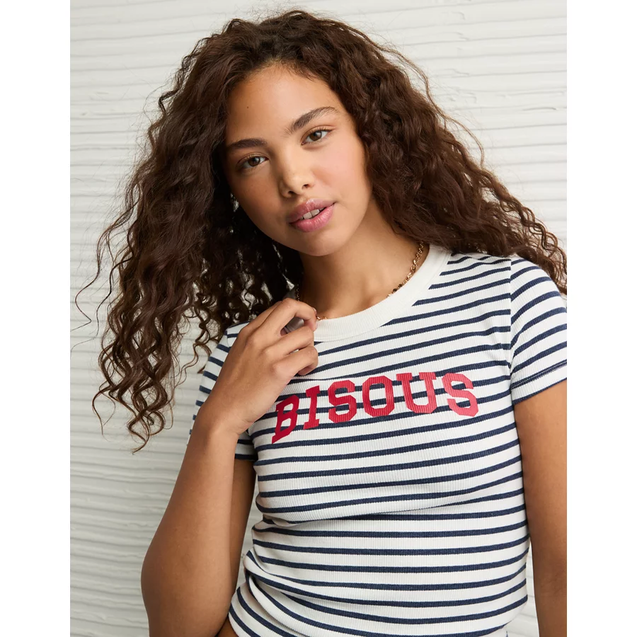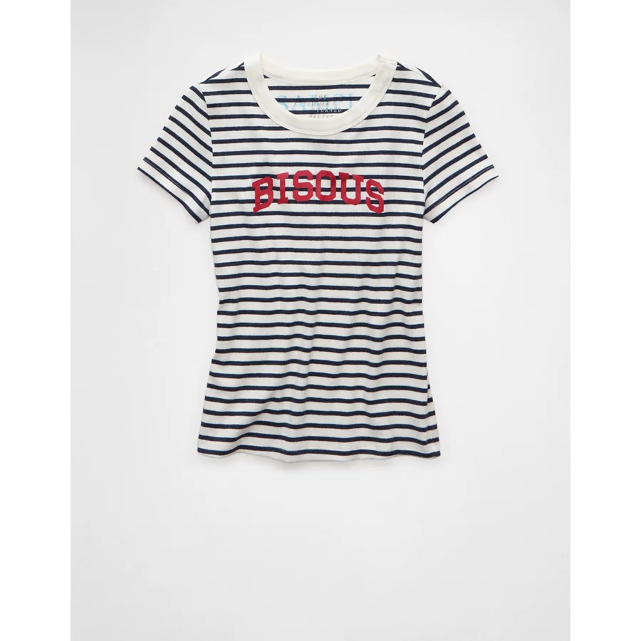 AE x The Summer I Turned Pretty Graphic Hey Baby Tee – Retro Indigo Stripe
