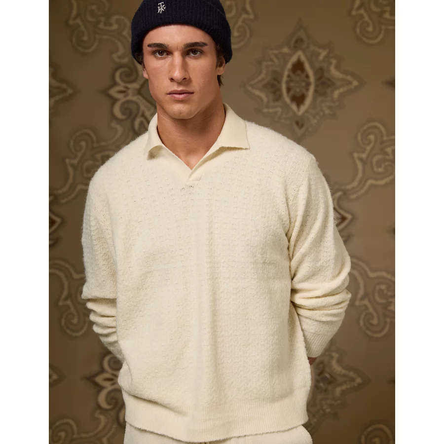 AE x Tru Kolors Long Sleeve Sweater Polo – Cream