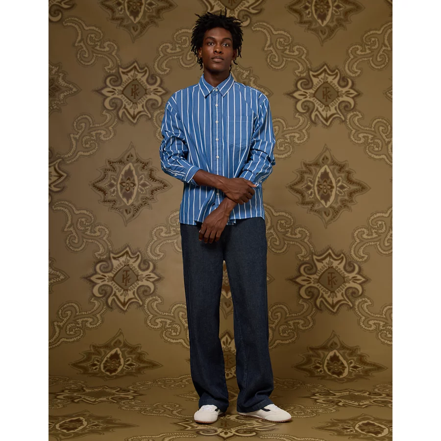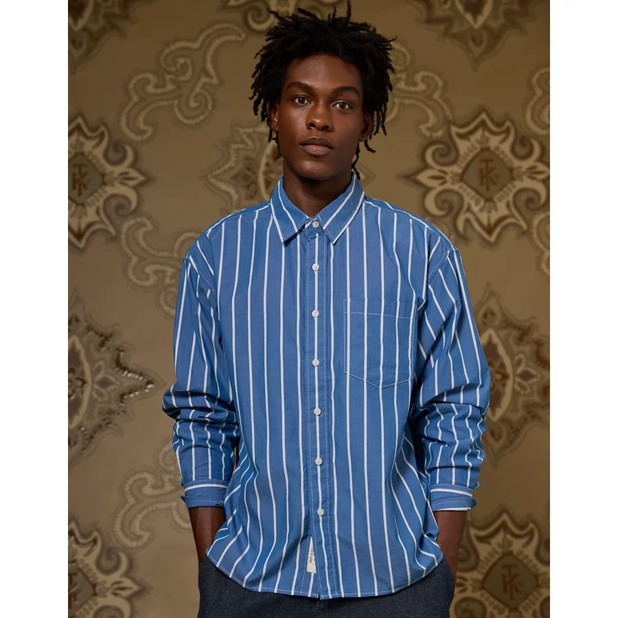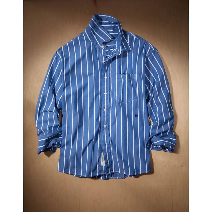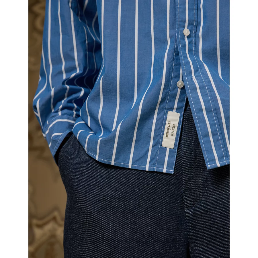 AE x Tru Kolors Poplin Striped Shirt – Light Blue