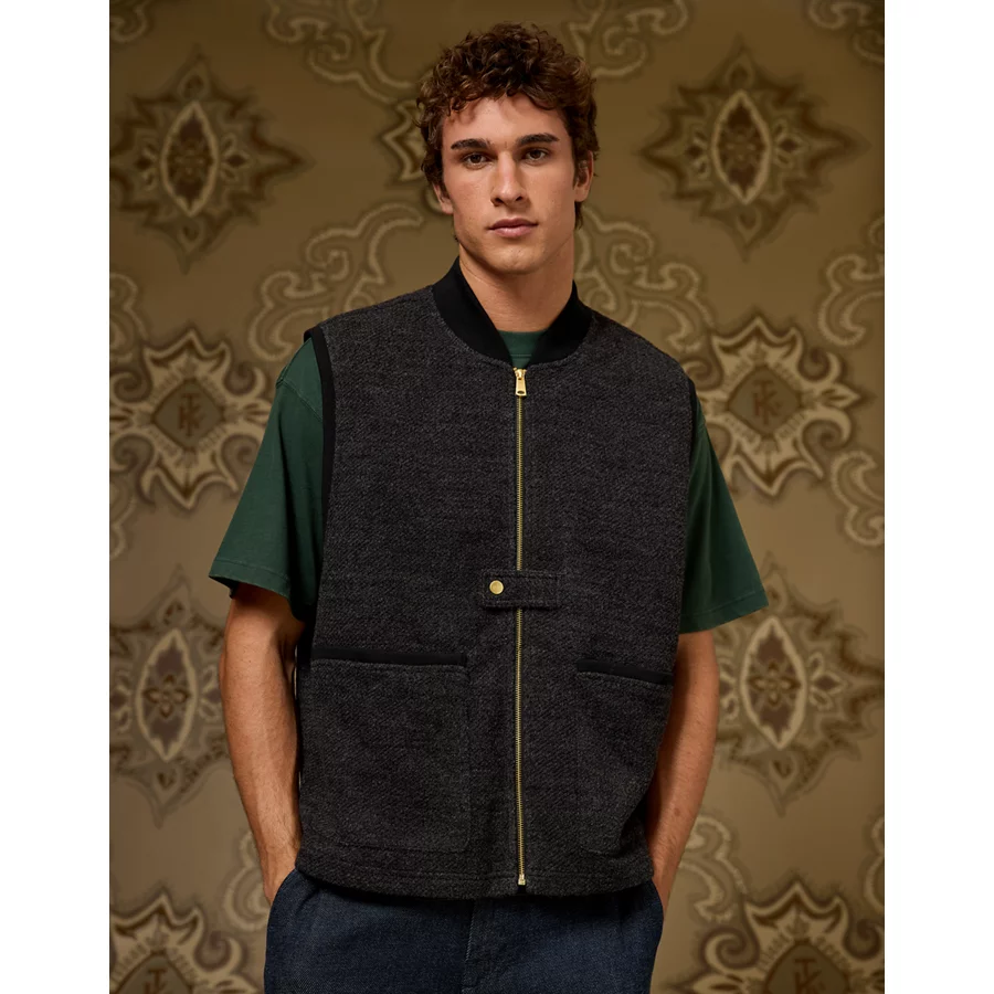 AE x Tru Kolors Wool-Blend Bomber Vest – Charcoal