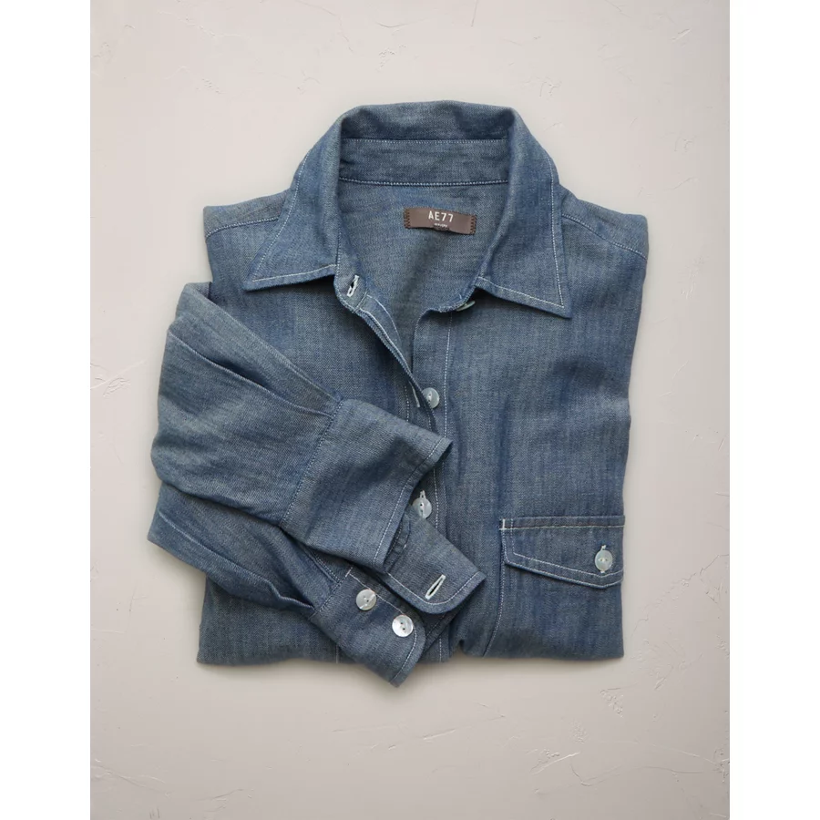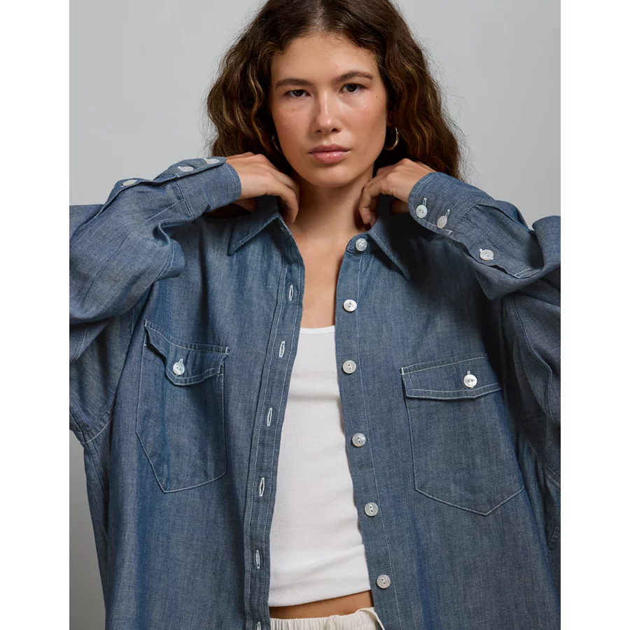AE77 Oversized Denim Boyfriend Shirt – Dark Rinse