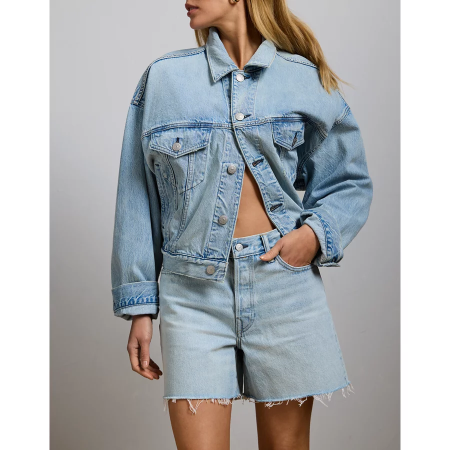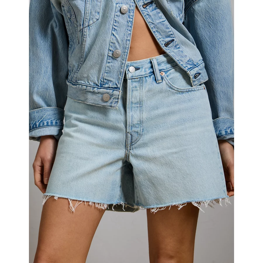 AE 8″ Dreamy Drape Stretch Low-Rise Baggy Jort – Medium Bright Indigo