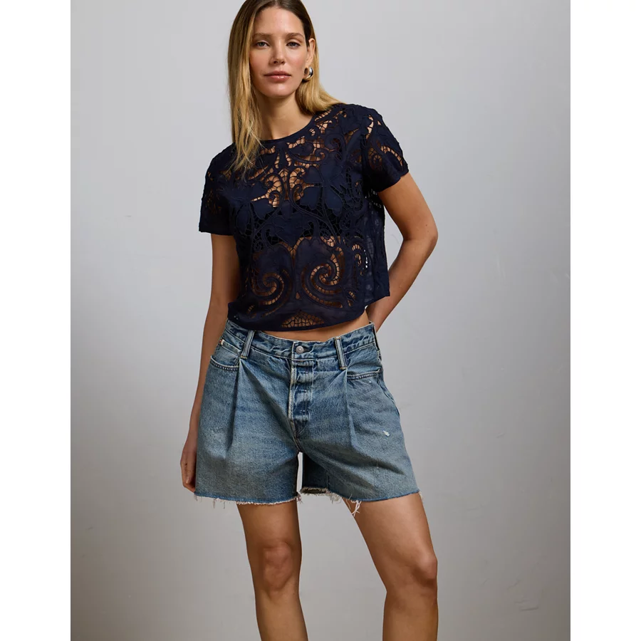 Dreamy, drapey denim with a hint of stretchDark washDouble shank buttonUtility-inspired pocketsThis short is Real Good: Made with the planet