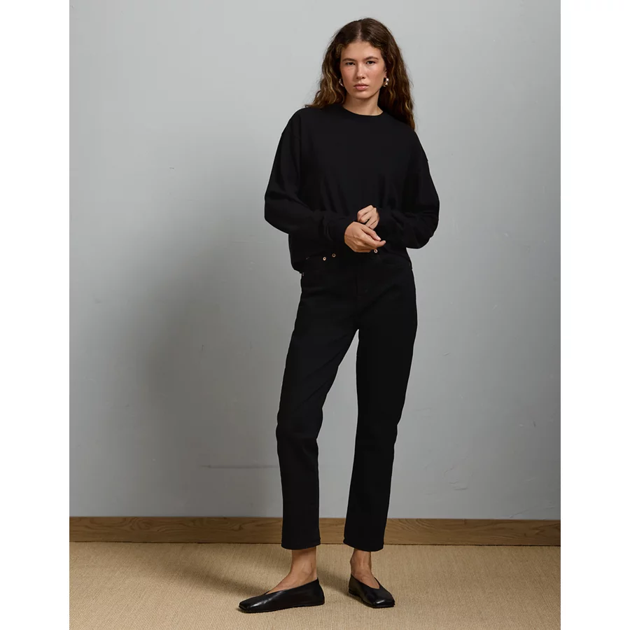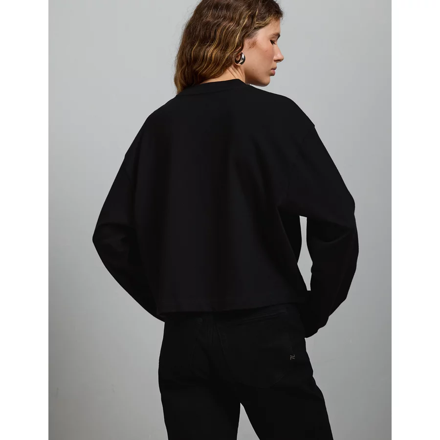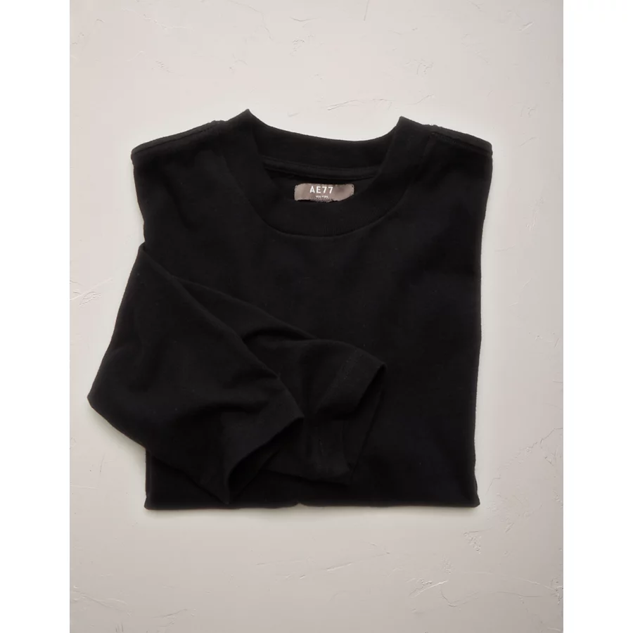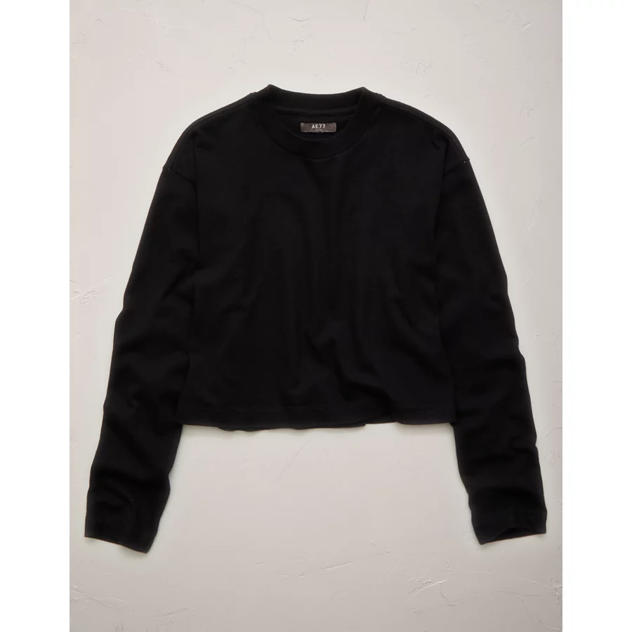 AE77 Premium Boxy Long-Sleeve Cropped T-Shirt – Black