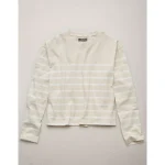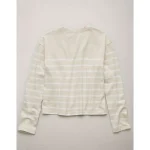 AE77 Premium Boxy Long-Sleeve Cropped T-Shirt - Navy