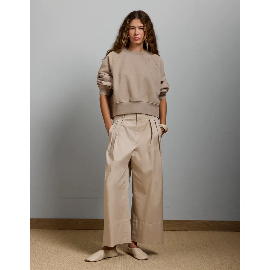 AE77 Premium Cropped Fleece Sweatshirt – Hazelnut