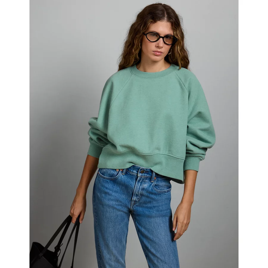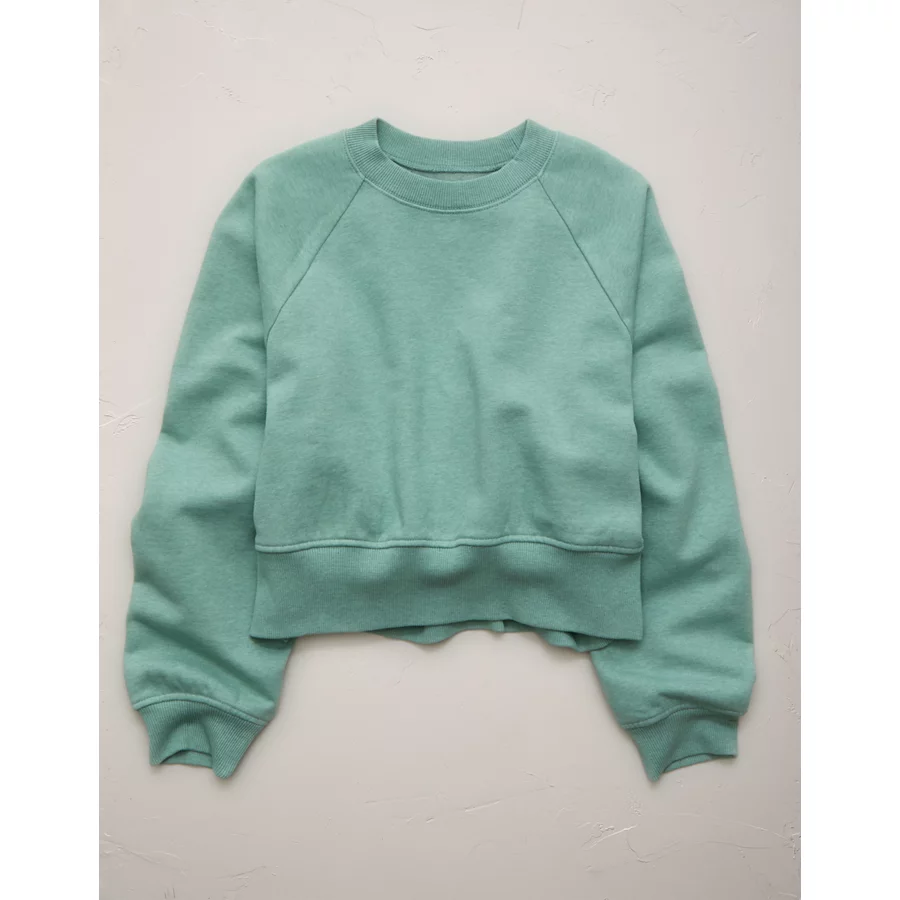 AE77 Premium Cropped Fleece Sweatshirt – Olive Moss