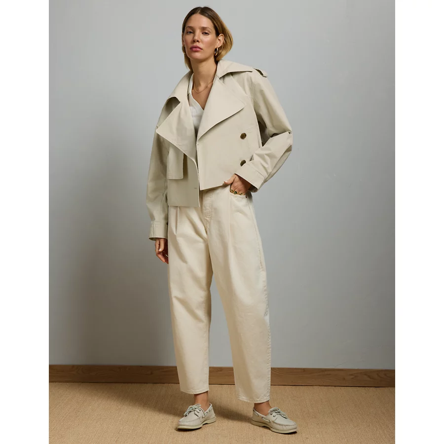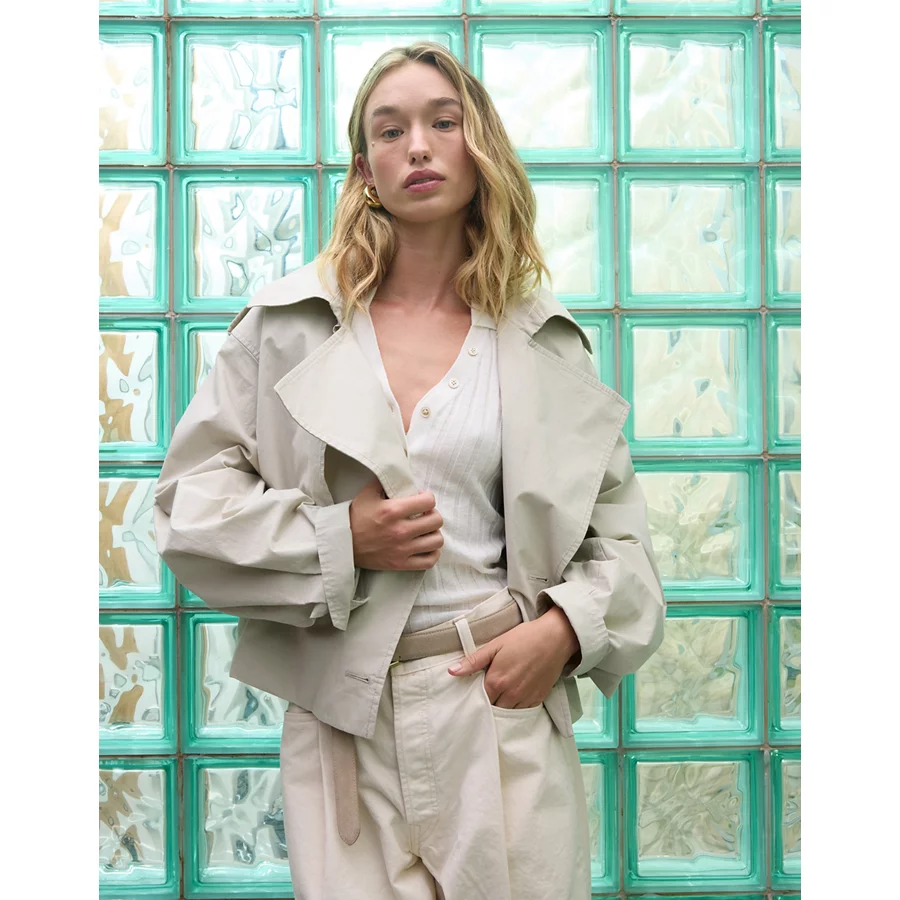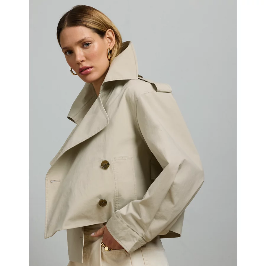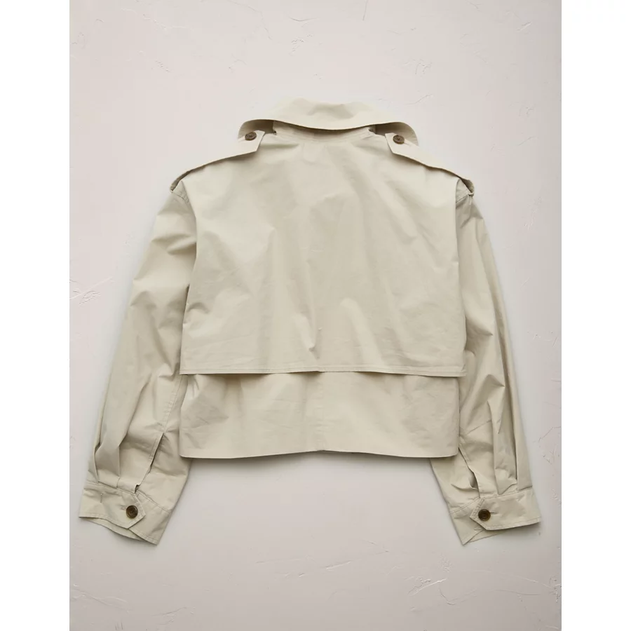 AE77 Premium Cropped Utility Trench Coat – Bone Khaki
