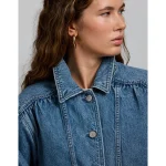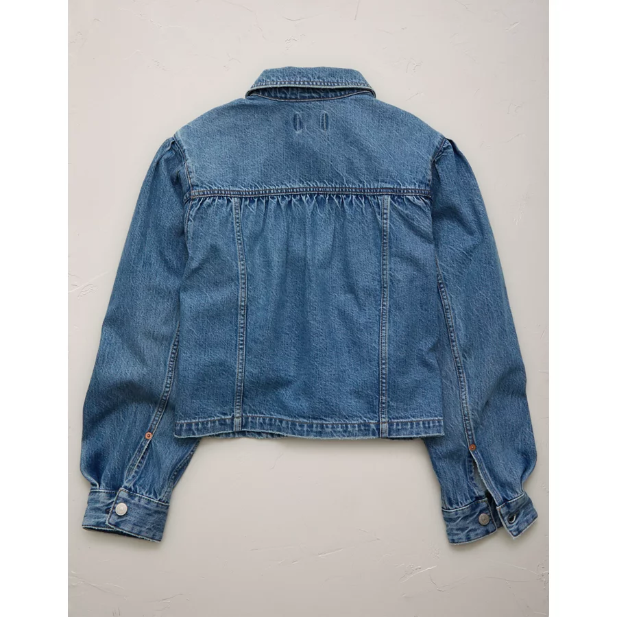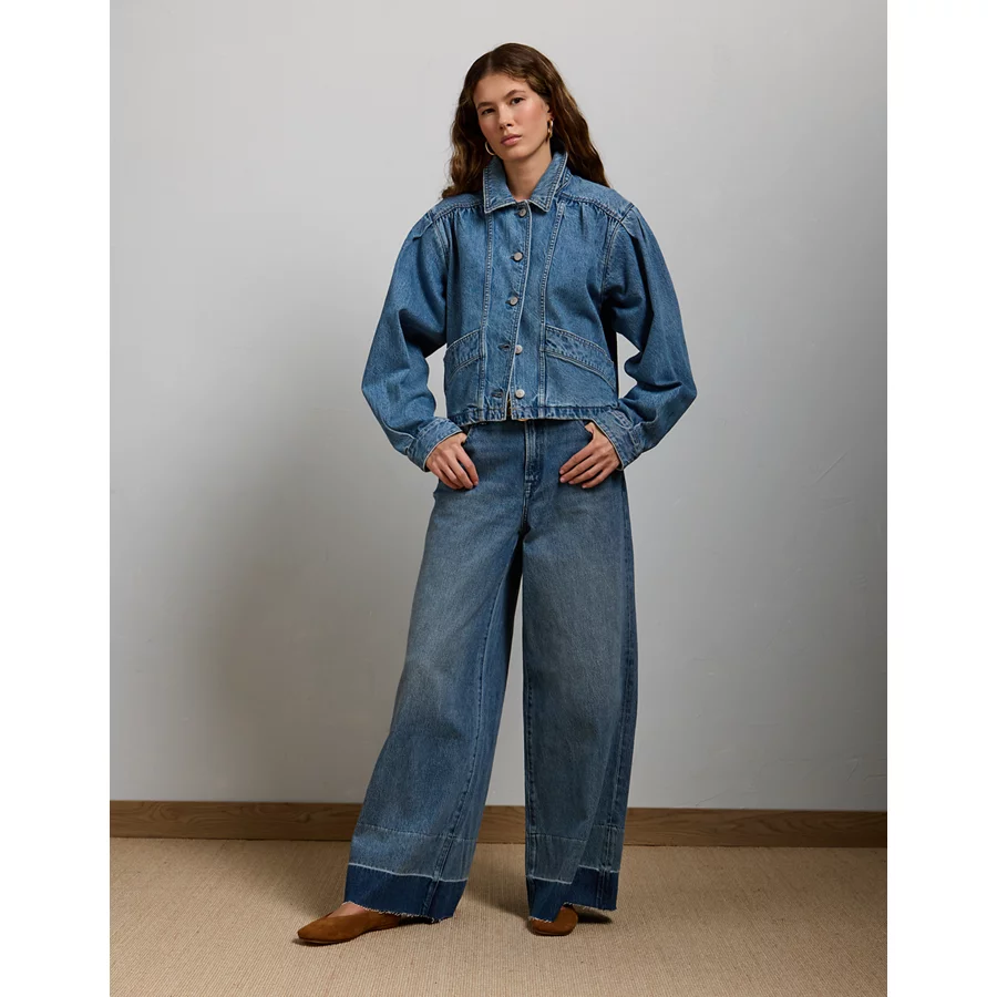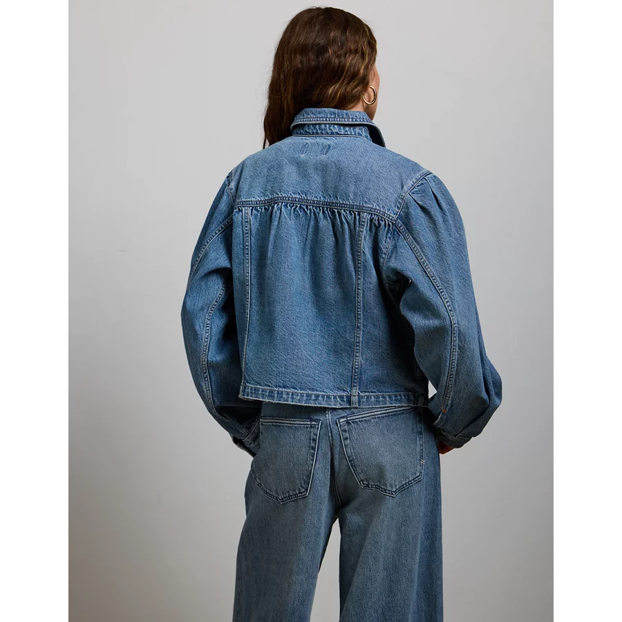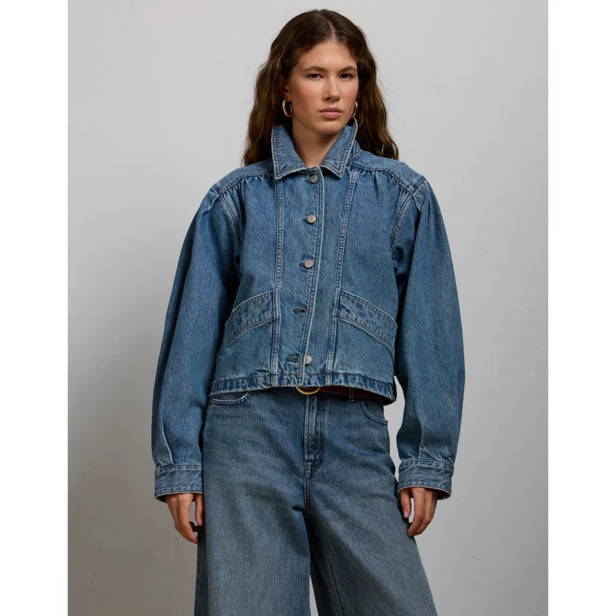 AE77 Premium Denim Cropped Jacket – Medium Wash