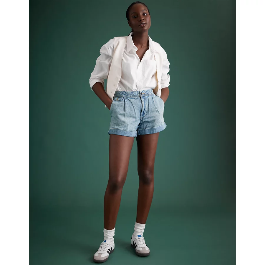 AE 11″ Dreamy Drape Stretch High-Waisted Jort – Light Tinted Wash