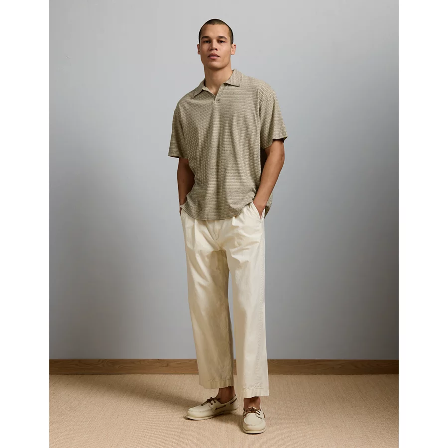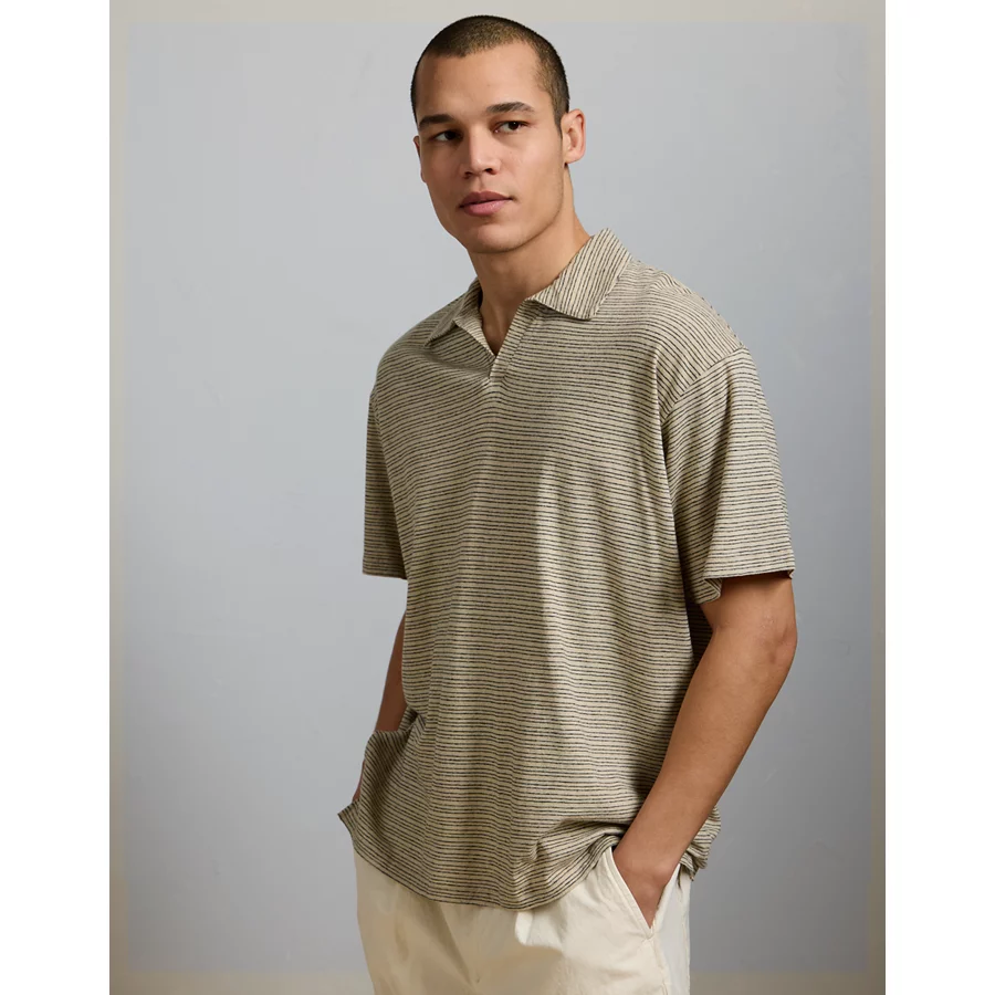 AE77 Premium Linen-Blend Polo Shirt – Khaki