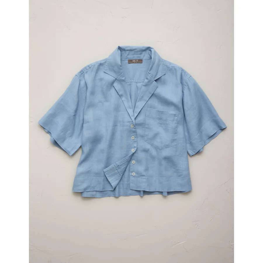 AE77 Premium Linen Camp Shirt – Chambray Blue