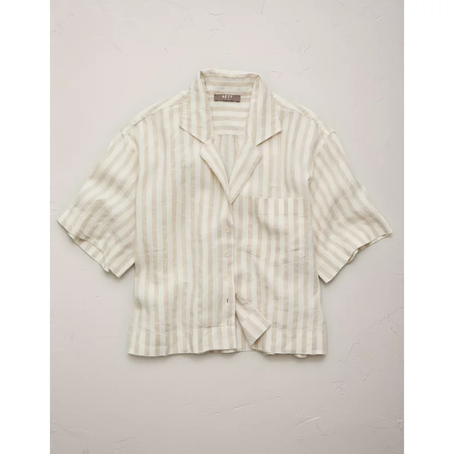 AE77 Premium Linen Camp Shirt - Chambray Blue