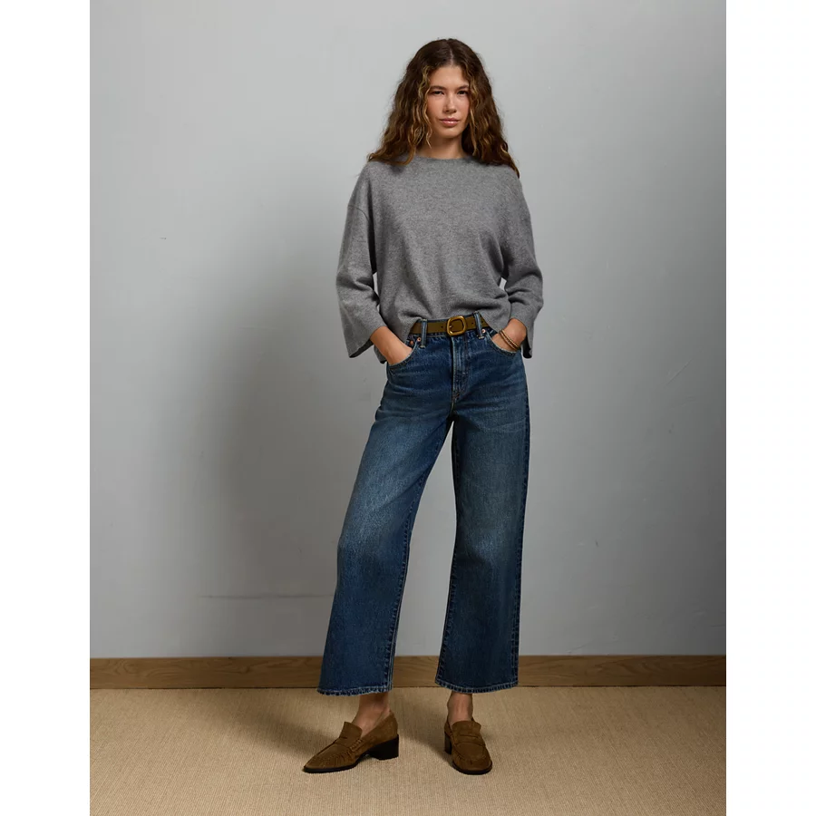 AE77 Premium Oversized Cashmere Sweater T-Shirt – Heather Gray