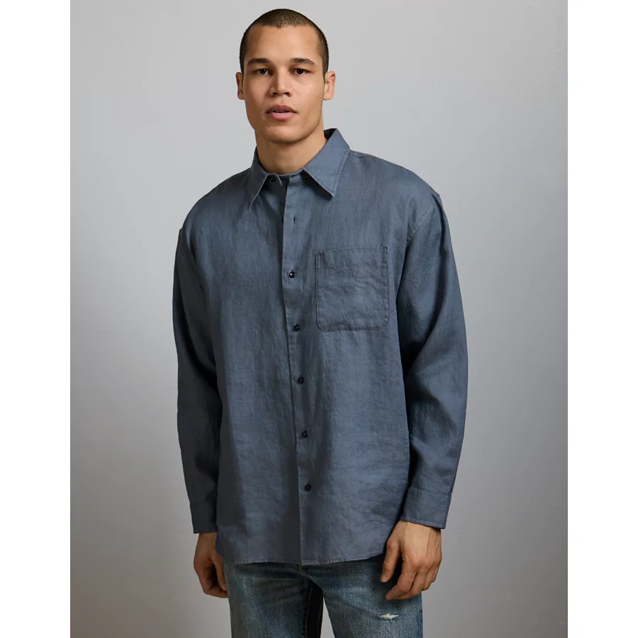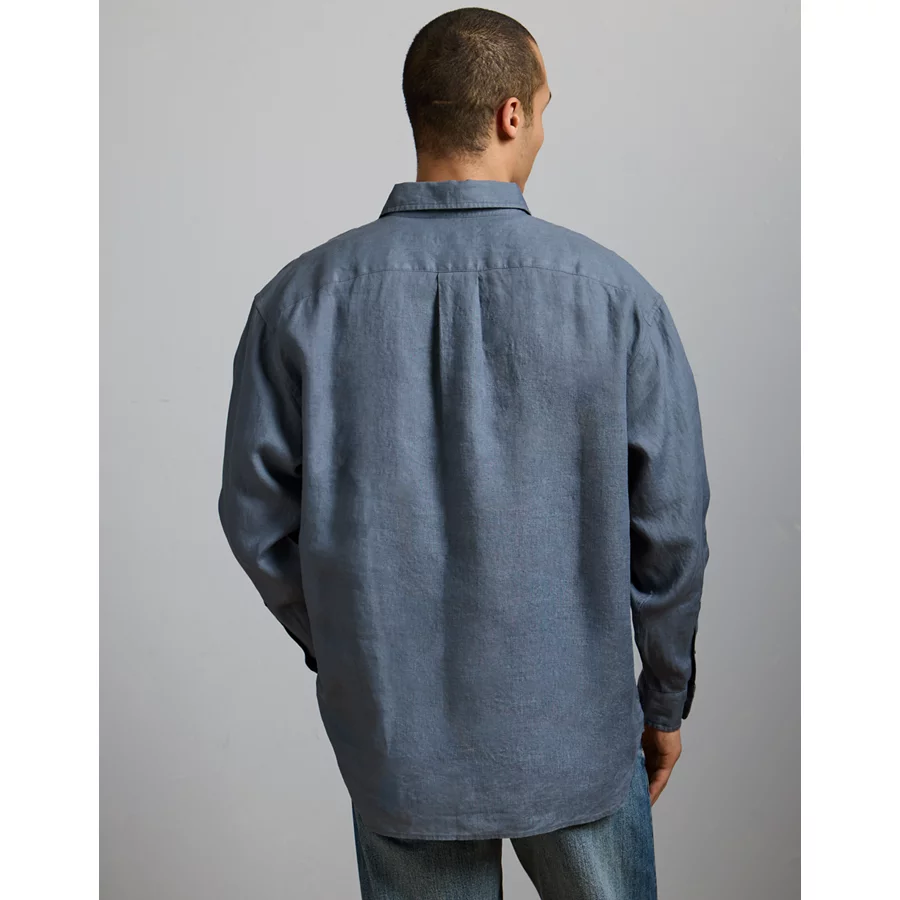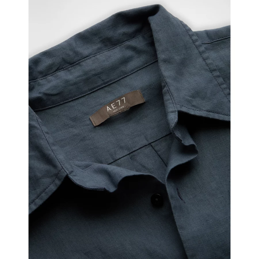 AE77 Premium Relaxed Linen Button-Up Shirt – Blue