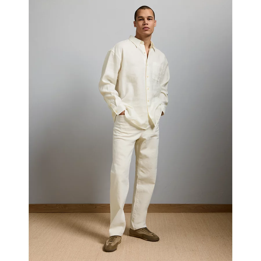 AE77 Premium Relaxed Linen Button-Up Shirt – White