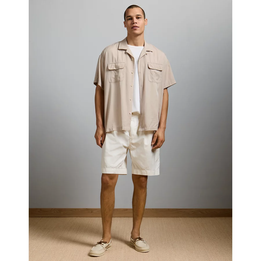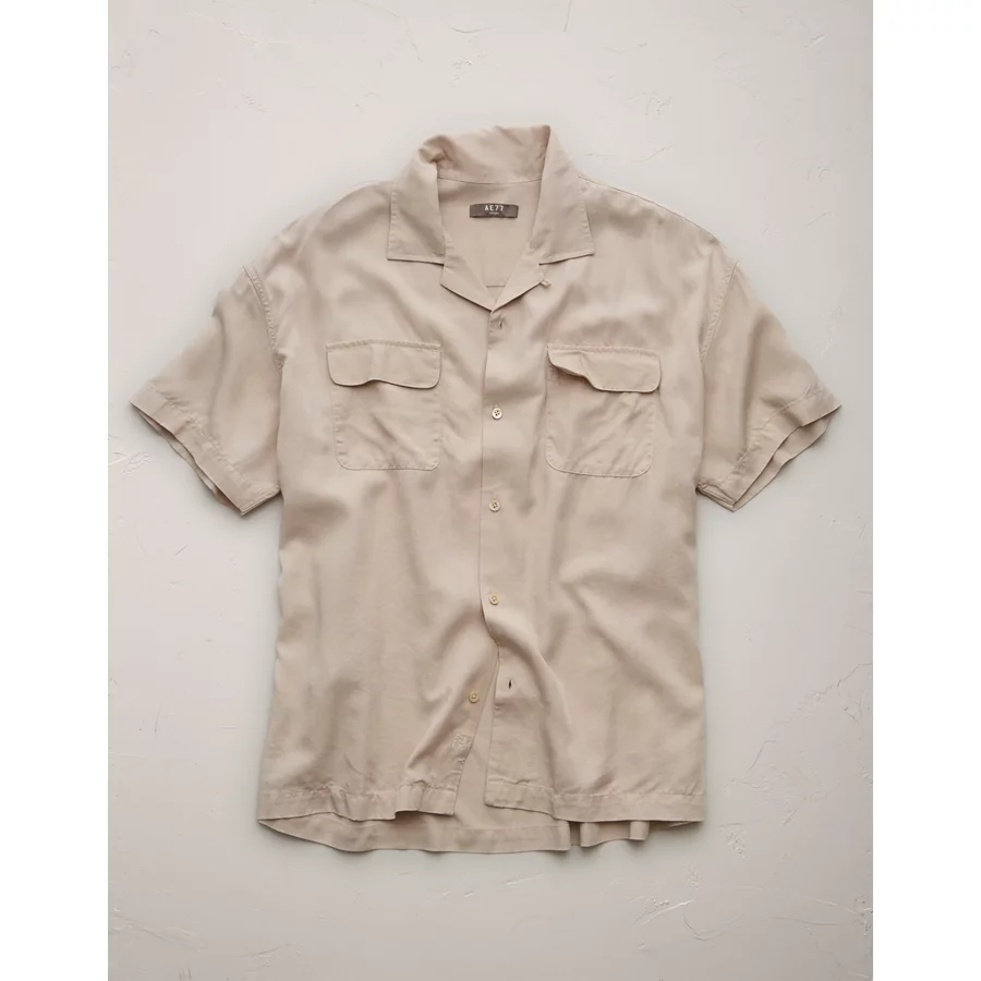 AE77 Premium Relaxed Short-Sleeve Button-Up Shirt – Khaki