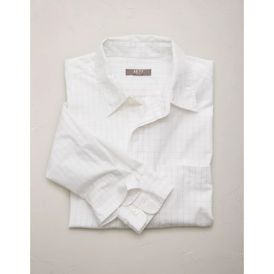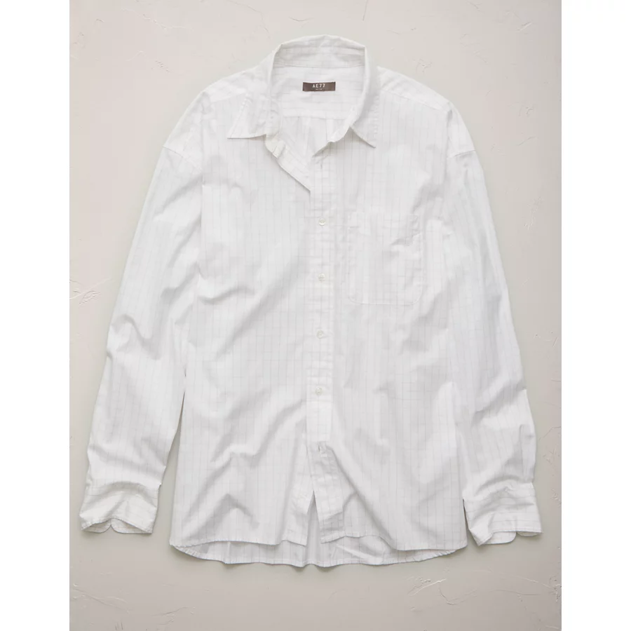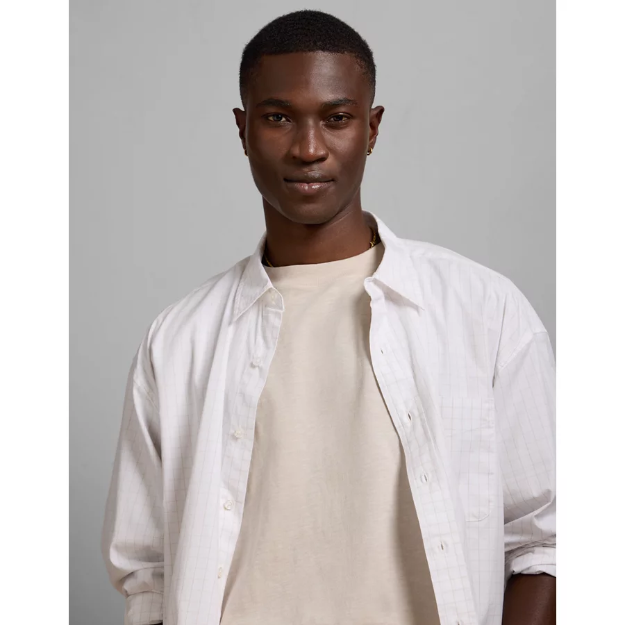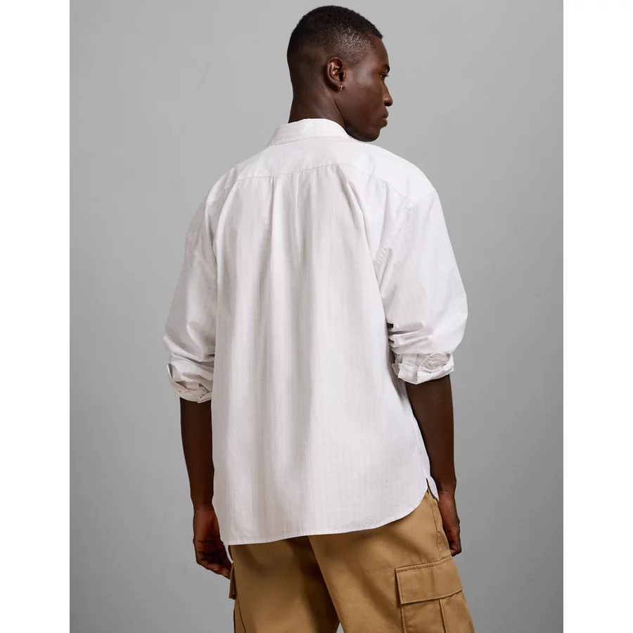 AE77 Premium Relaxed Striped Poplin Button-Up Shirt – Gleam White