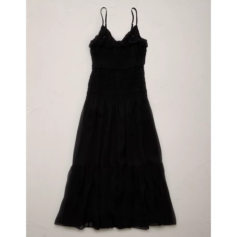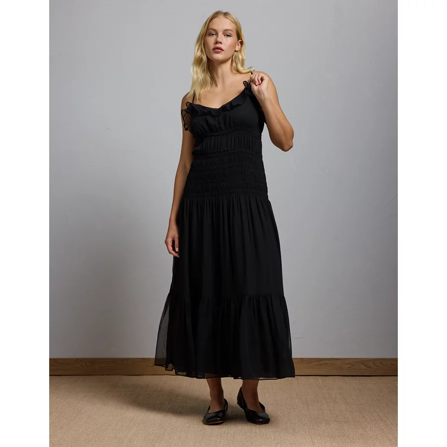AE77 Premium Smocked Maxi Dress – Black