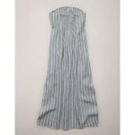 AE77 Premium Strapless Linen Midi Dress – Blue