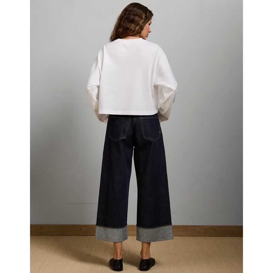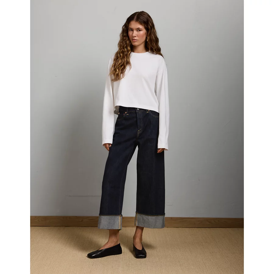 AE77 Premium Wide Crop Cuff Jean – Dark Rinse
