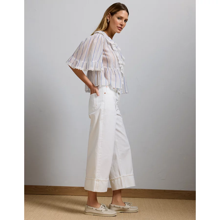 AE77 Premium Wide Crop Cuff Jean – White