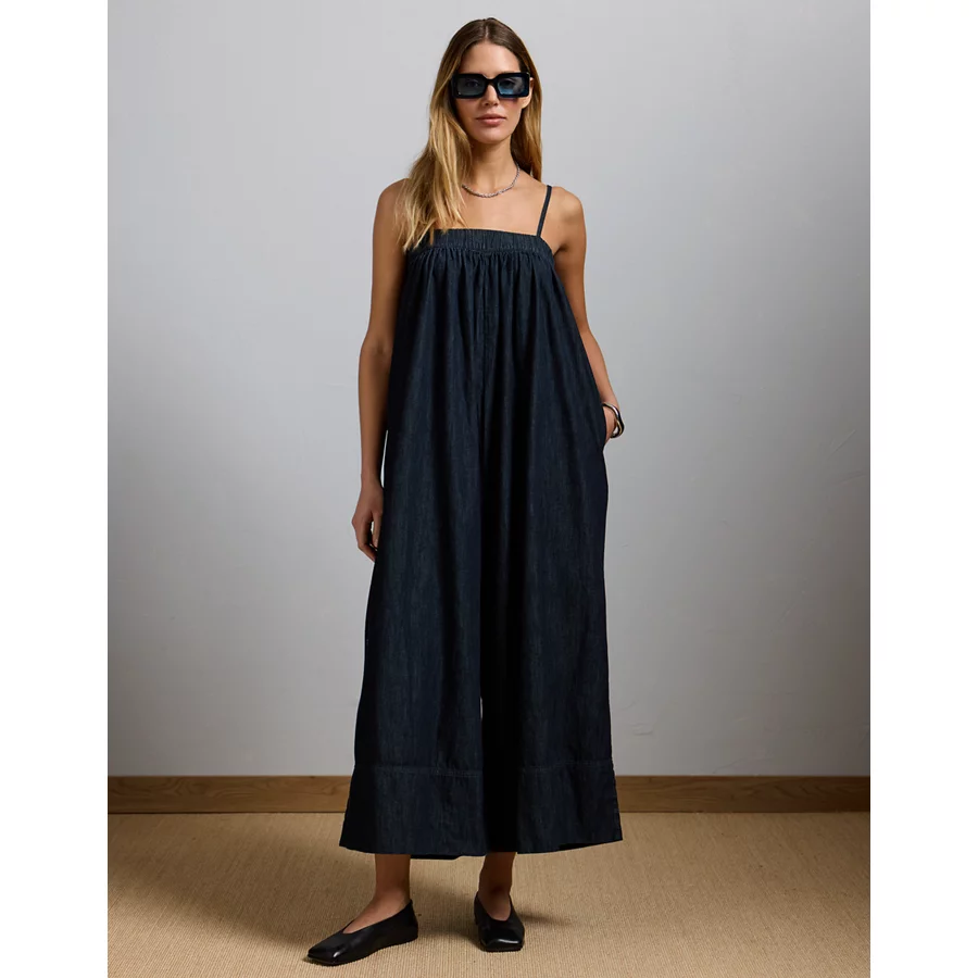 AE77 Premium Wide-Leg Denim Jumpsuit – Dark Wash