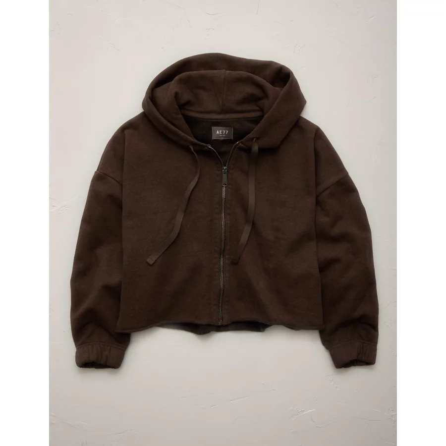 AE77 Premium Zip-Up Hoodie – Dark Brown