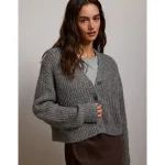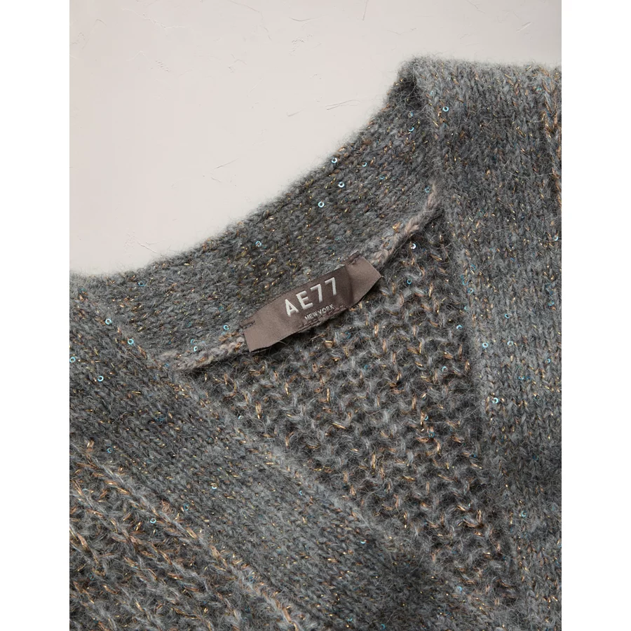 AE77 Shaker Stitch Cardigan Sweater – Grey