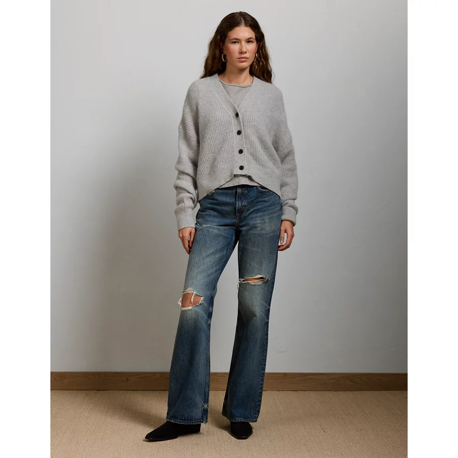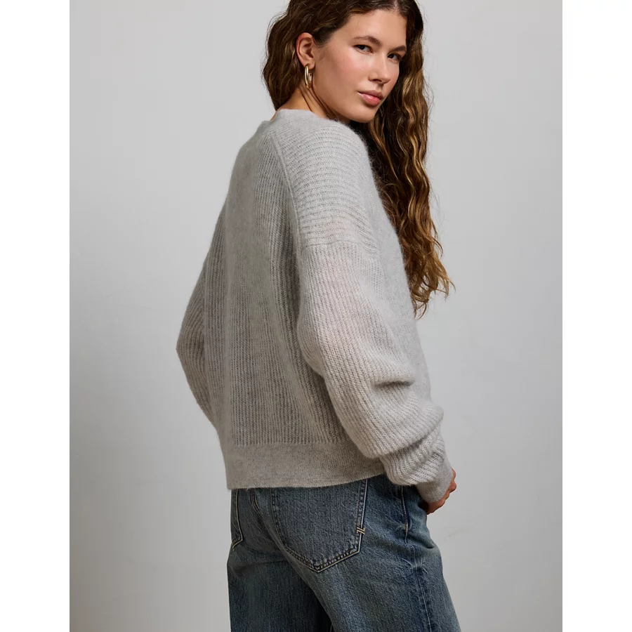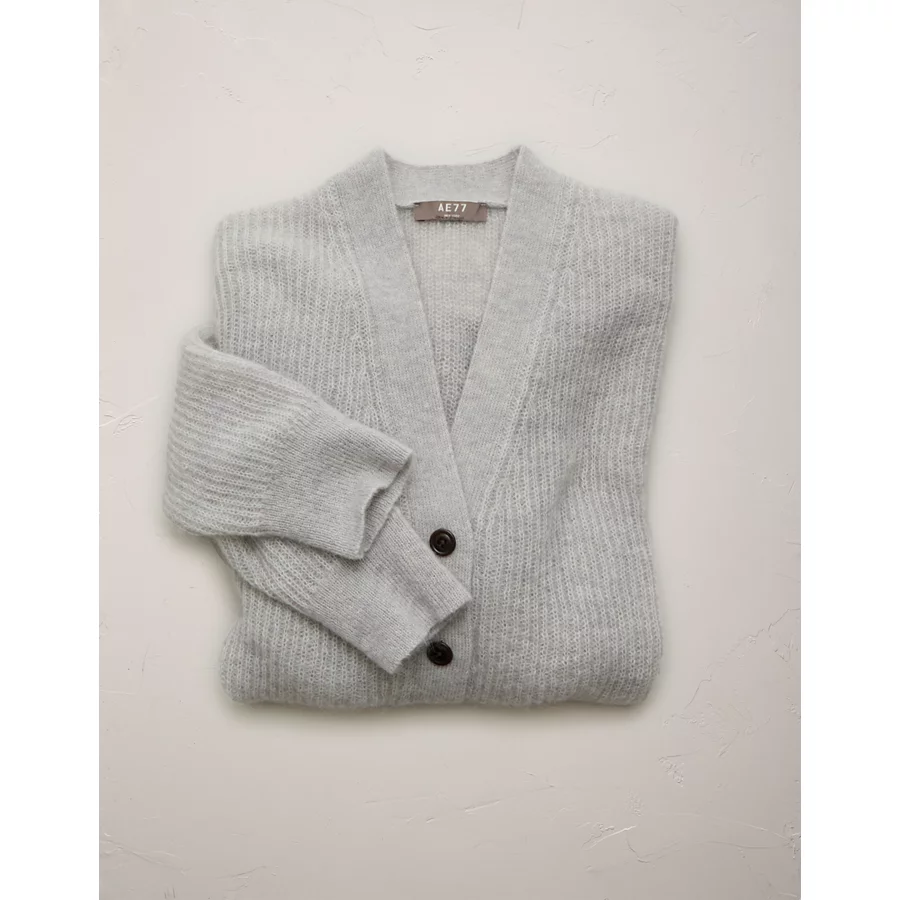 AE77 Sparkle Shaker Stitch Cardigan – Light Heather Gray