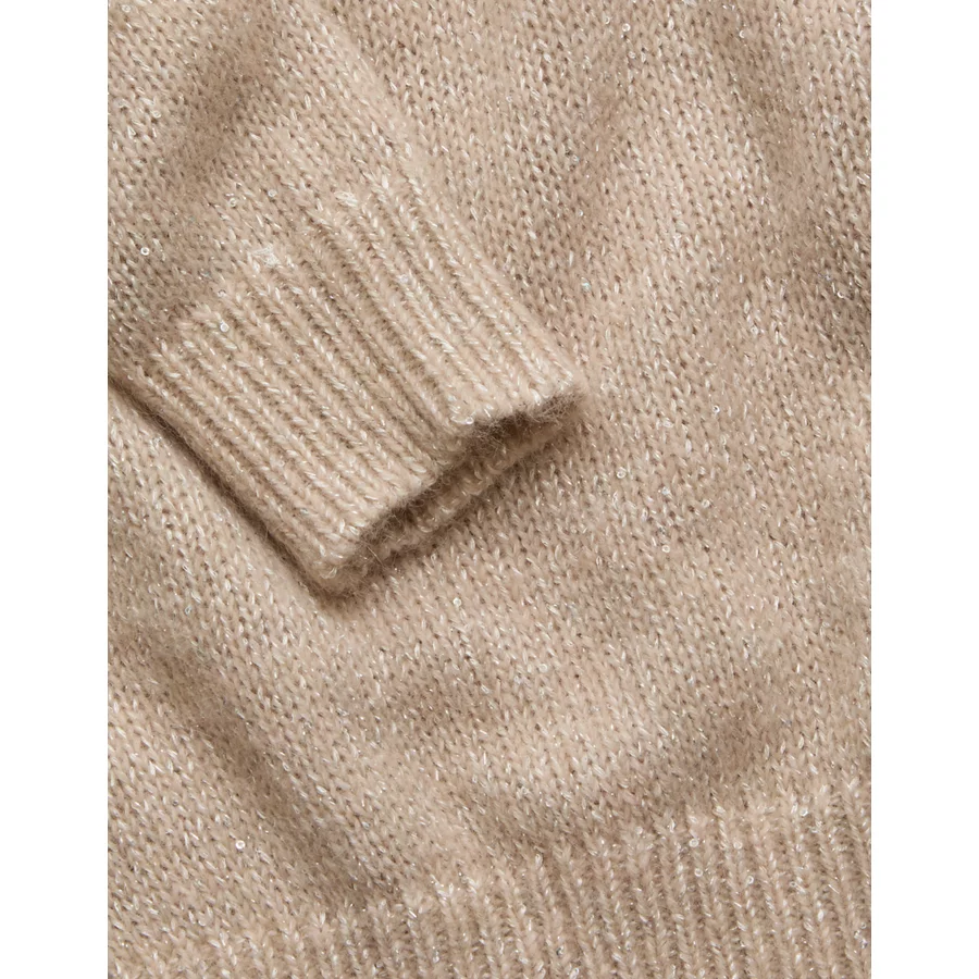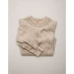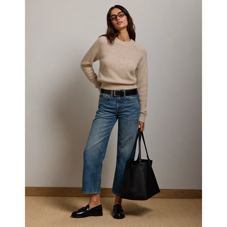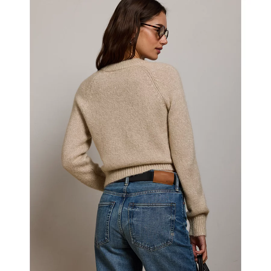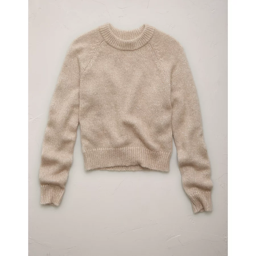 AE77 Sparkle Shrunken Crew Neck Sweater – Light Brown
