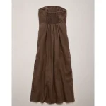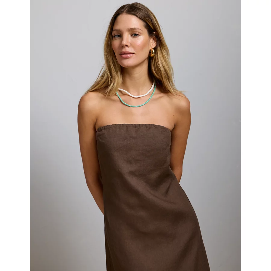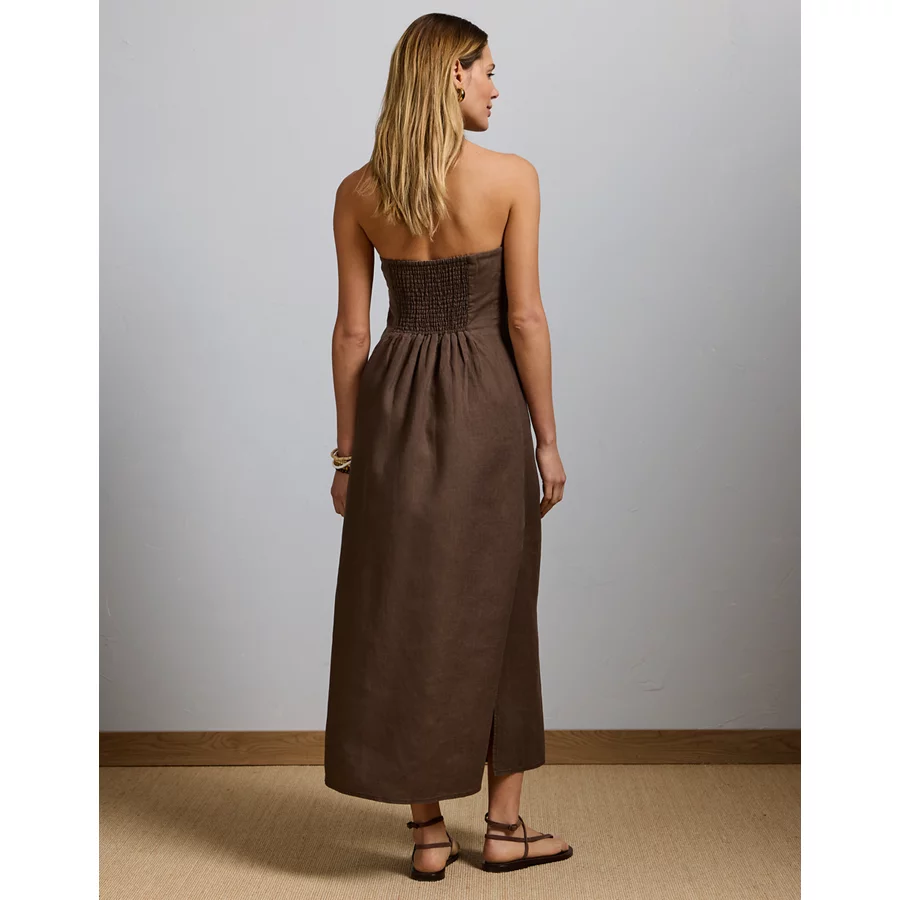 AE77 Strapless Linen Midi Dress – Brown